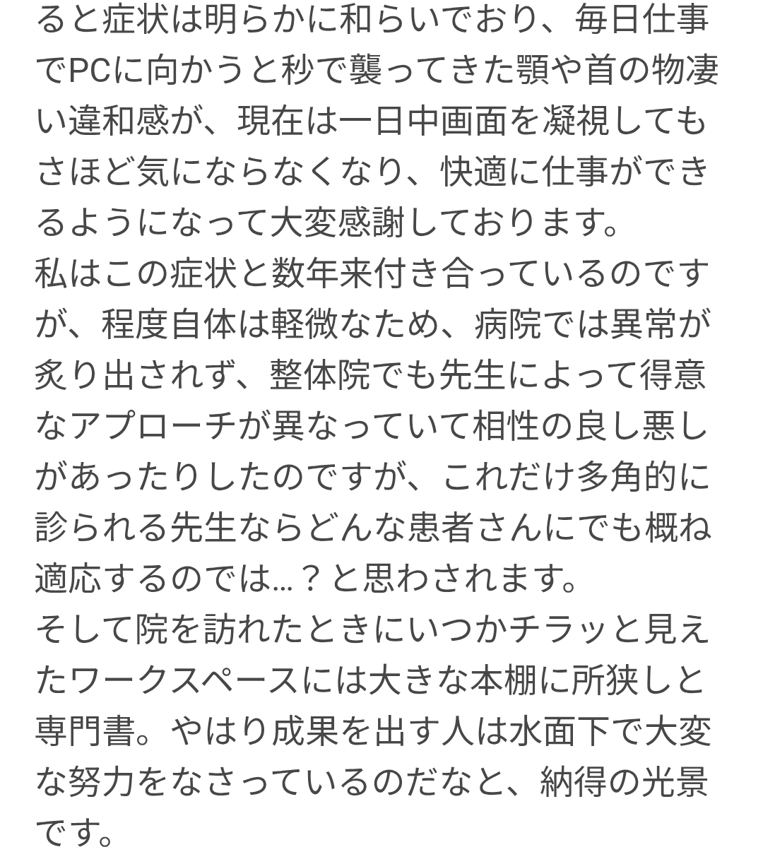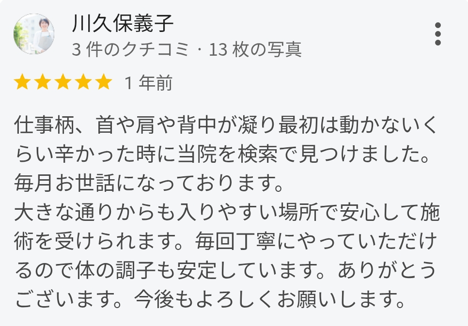 肩こりが楽になった。喜びの声