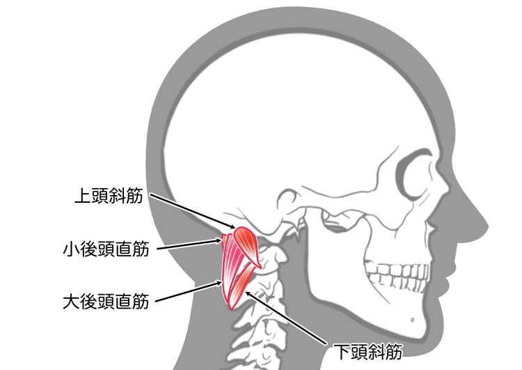 3.頭の付け根にある筋肉(後頭下筋群)が凝っている